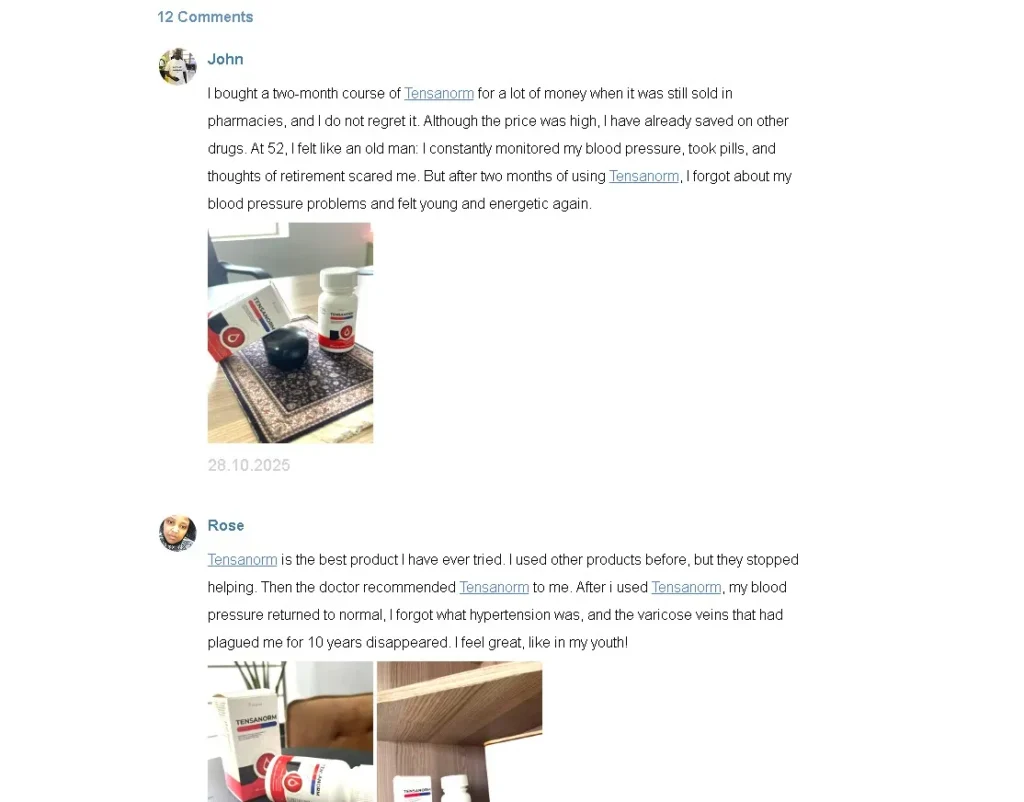 “For years I struggled with constant headaches and pressure fluctuations. I didn’t want to rely on strong medication, so I decided to try Tensanorm. After just a few weeks, I noticed calmer mornings, fewer headaches, and better focus. It has become part of my daily routine now.”